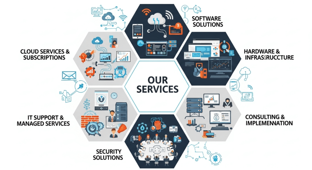 • IT Hardware Solutions: From servers and storage to networking equipment and peripherals, we provide high-quality hardware from leading manufacturers.